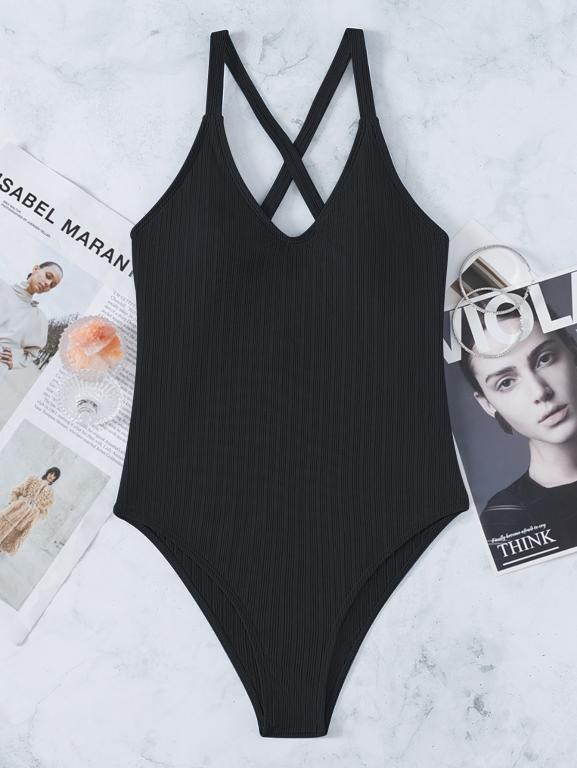 V-Neck One Piece Swimsuit Women Sexy Solid Bathing Suits High Cut Swimwear